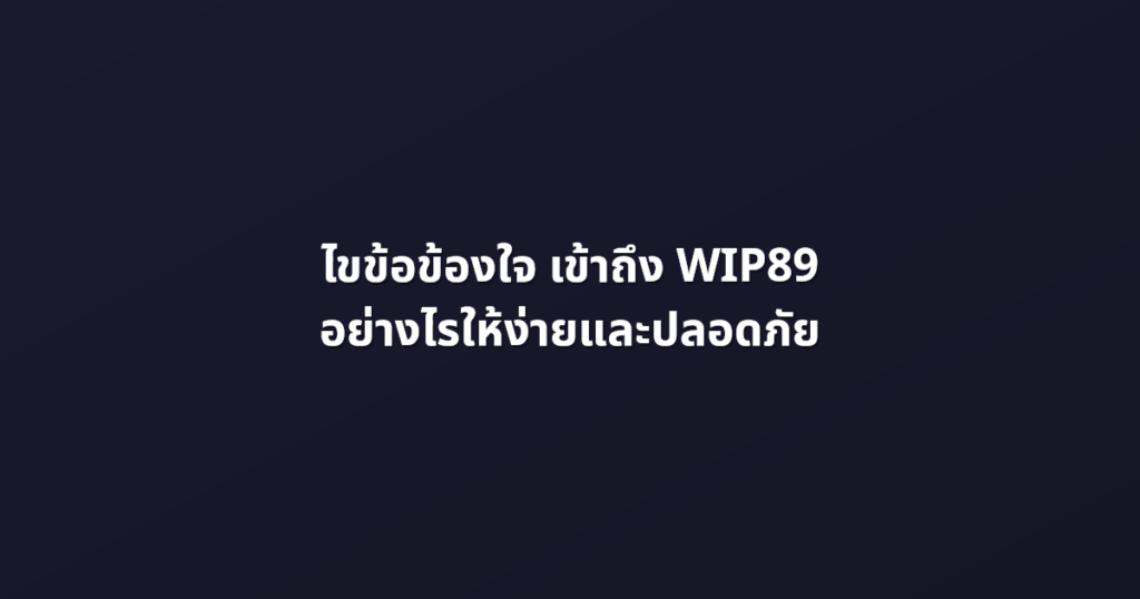 ไขข้อข้องใจ เข้าถึง WIP89 อย่างไรให้ง่ายและปลอดภัย
